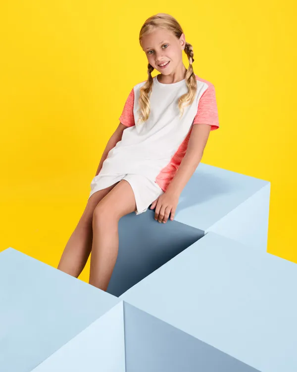Tejido delantero: 100% poliéster bird´s eye. Tejido trasero: 100% poliéster space dye. 135 g/m².