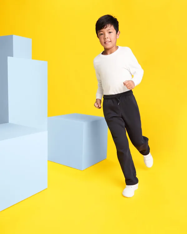 Pantalón largo de corte recto con dos bolsillos laterales y cinturilla elástica con cordón ajustable.